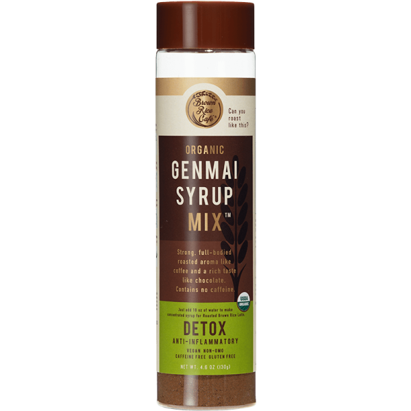 ORGANIC GENMAI SYRUP MIX is a perfectly-balanced blend of Organic Roasted Brown Rice Powder and Organic Unrefined Raw Sugar. Add 10 oz (285ml) of water and shake thoroughly. Once completely mixed, keep the bottle in the refrigerator for at least 24 hours. This will allow the ingredients to harmonize and mellow into a delicious GENMAI SYRUP (Roasted Brown Rice Syrup). The syrup’s smooth, persistent thickness stays on your tongue for longer while drinking, enhancing the fragrant aroma of Roasted Brown Rice.
