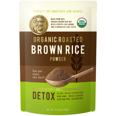 Organic roasted brown rice powder’s raw material is 100% brown rice, so no caffeine nor gluten is included.